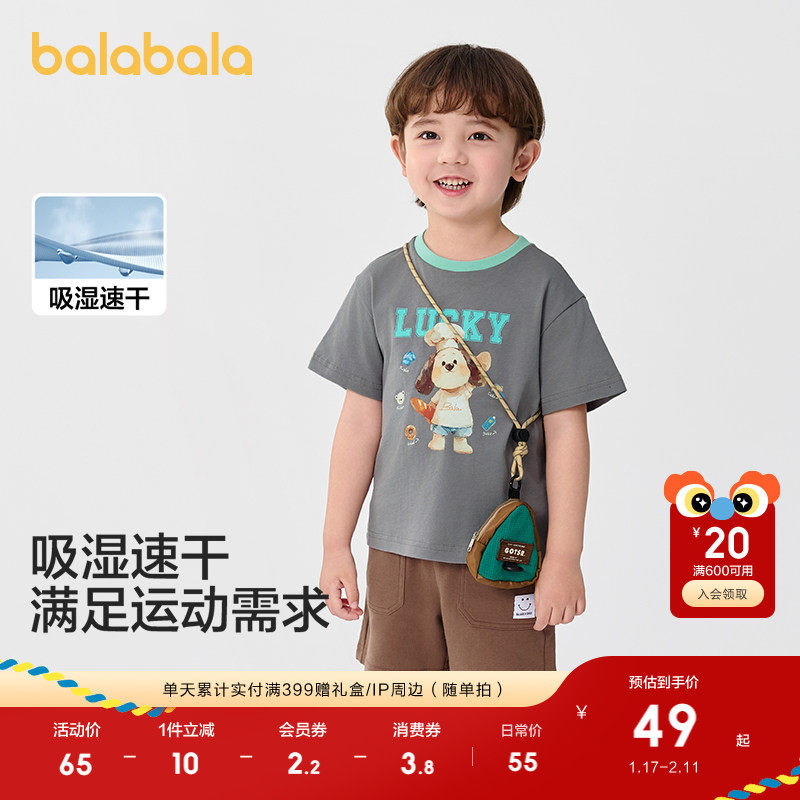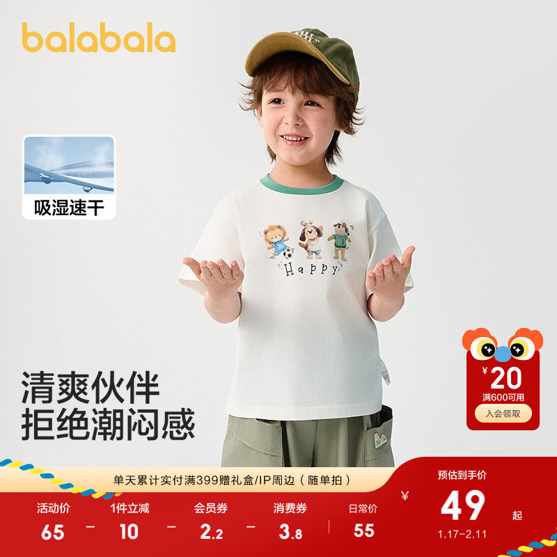 巴拉巴拉童装宝宝短袖t恤婴儿打底衫男童上衣儿童2025新夏季速干