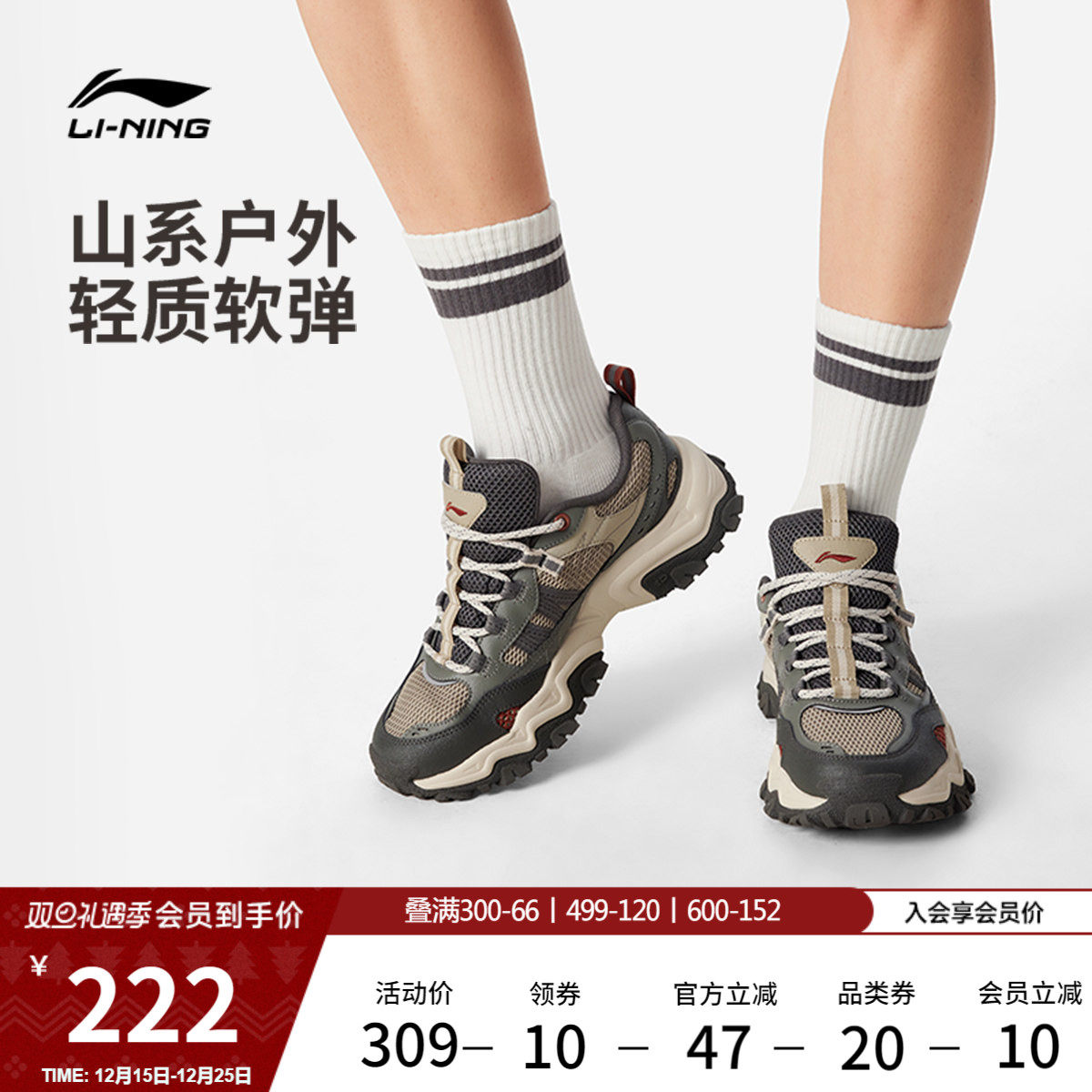 李宁山行丨休闲鞋男鞋冬季新款复古山系老爹鞋户外防滑耐磨运动鞋