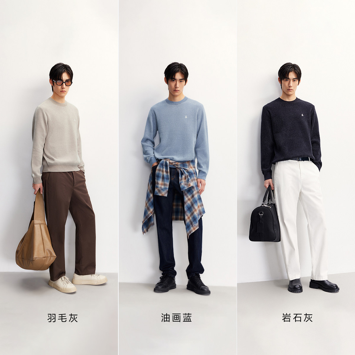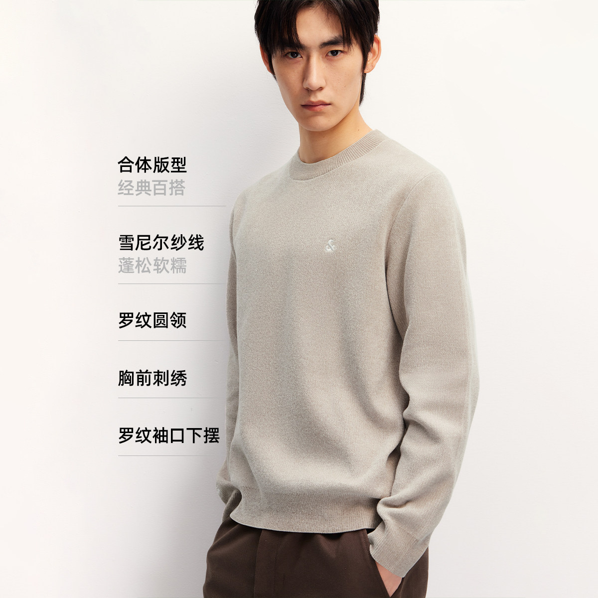 杰克琼斯奥特莱斯男装秋季毛衣针织衫亲肤面料刺绣潮流长袖上衣
