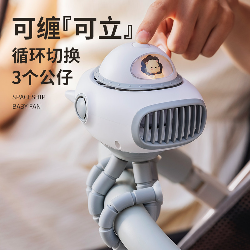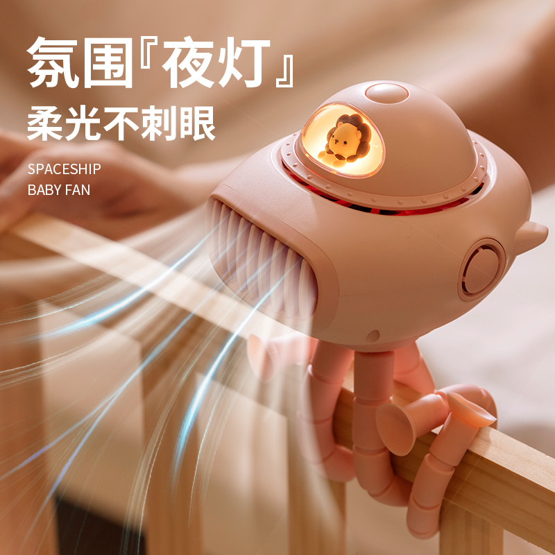 婴儿车风扇八爪鱼宝宝bb手推车无叶小风扇摇头便携式夏天户外遛娃神器专用儿童可驱蚊放音乐床夹式静音电风扇
