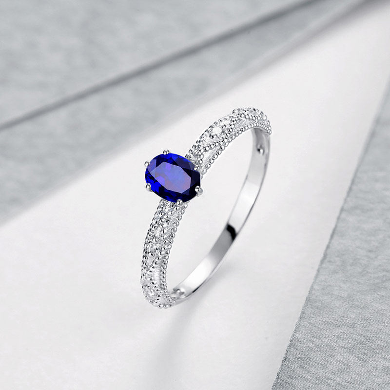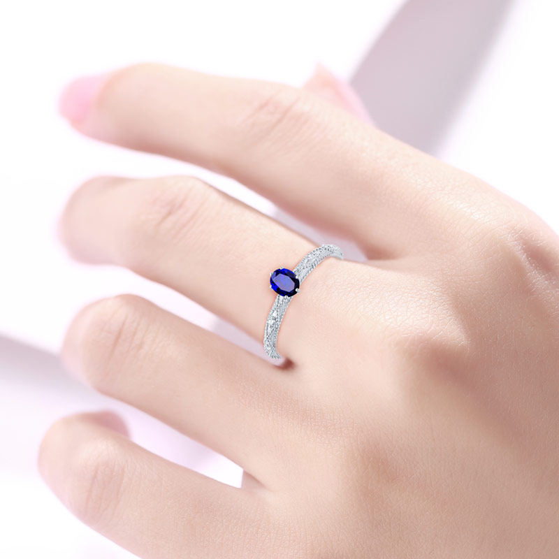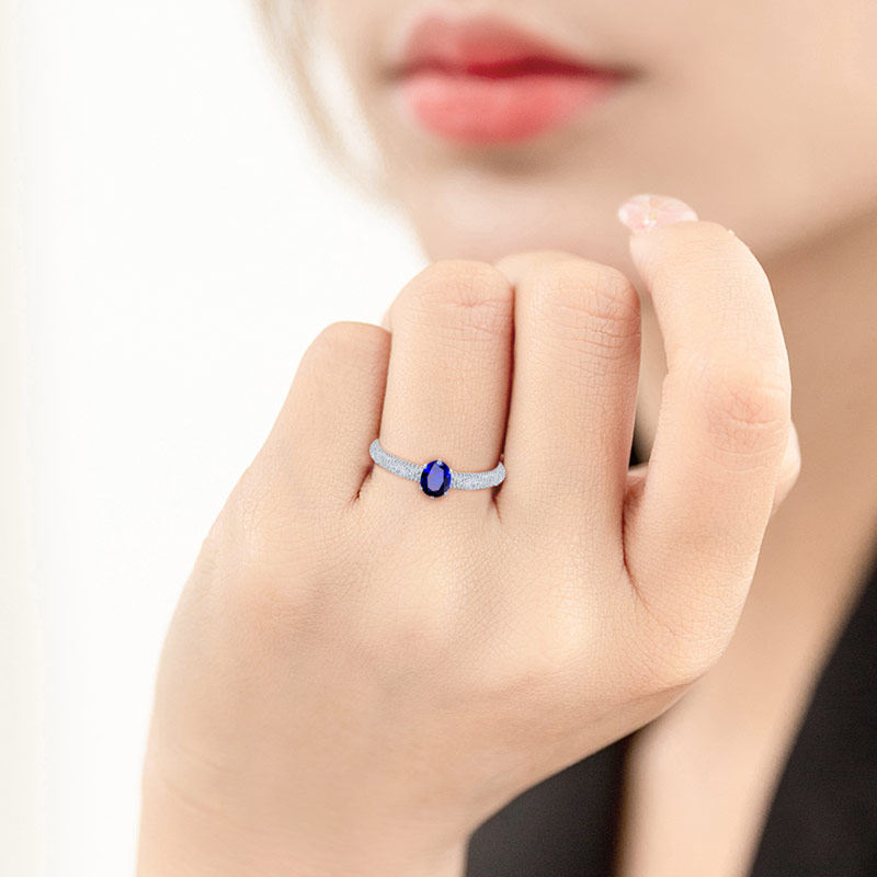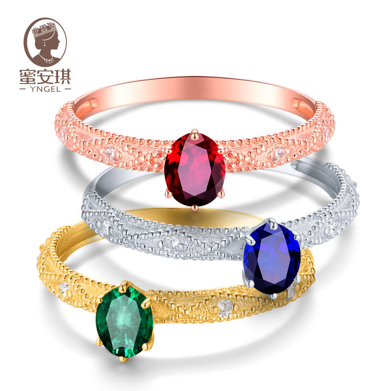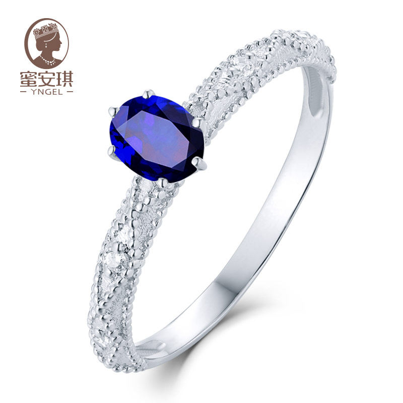 Yngel/蜜安琪正品斯里兰卡蓝宝石戒指女18K金镶钻彩宝定制送女友