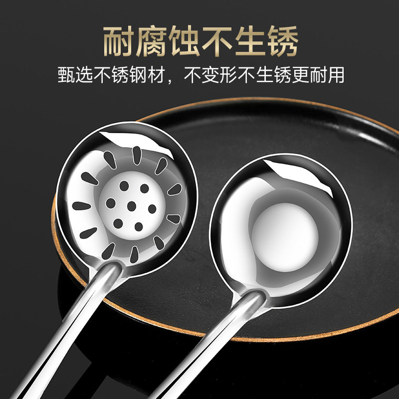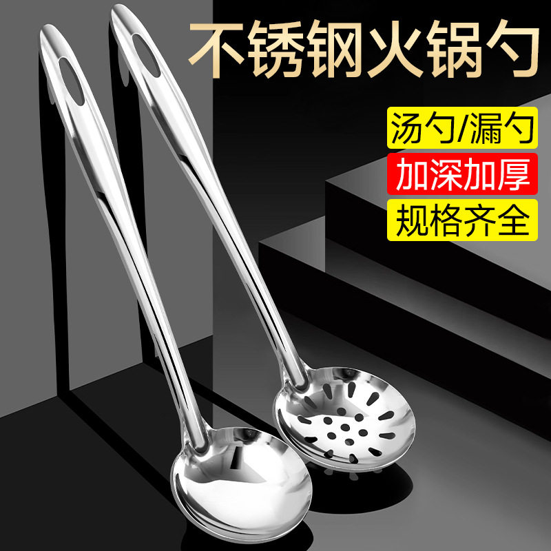 不锈钢勺子火锅勺带挂钩长柄汤勺餐厅饭店小漏勺家用小号套装商用