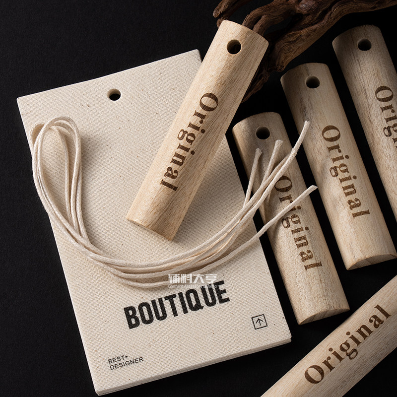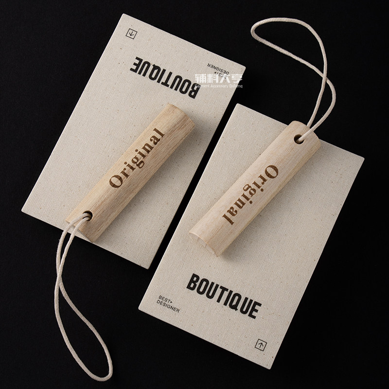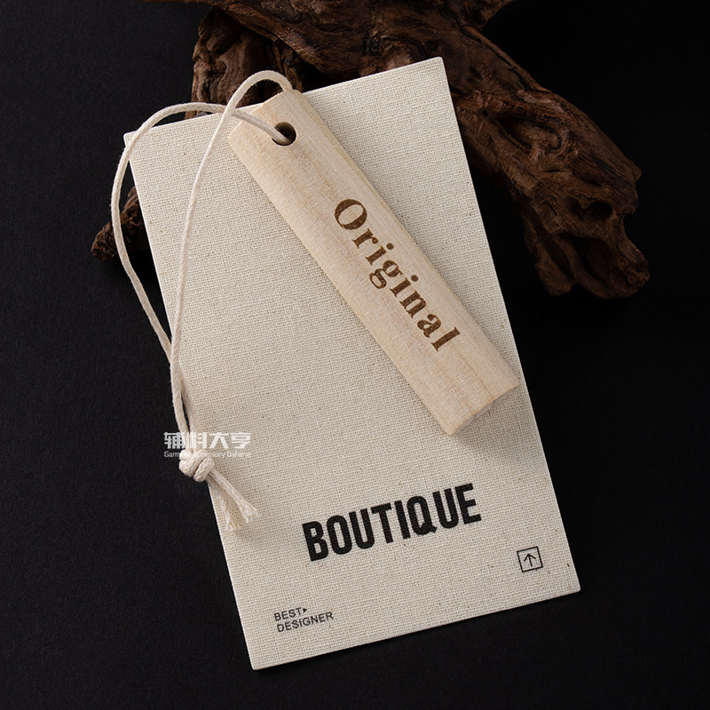 甄选自然木材文艺复古棉麻吊牌定制LOGO设计师款挂牌商标订做标签