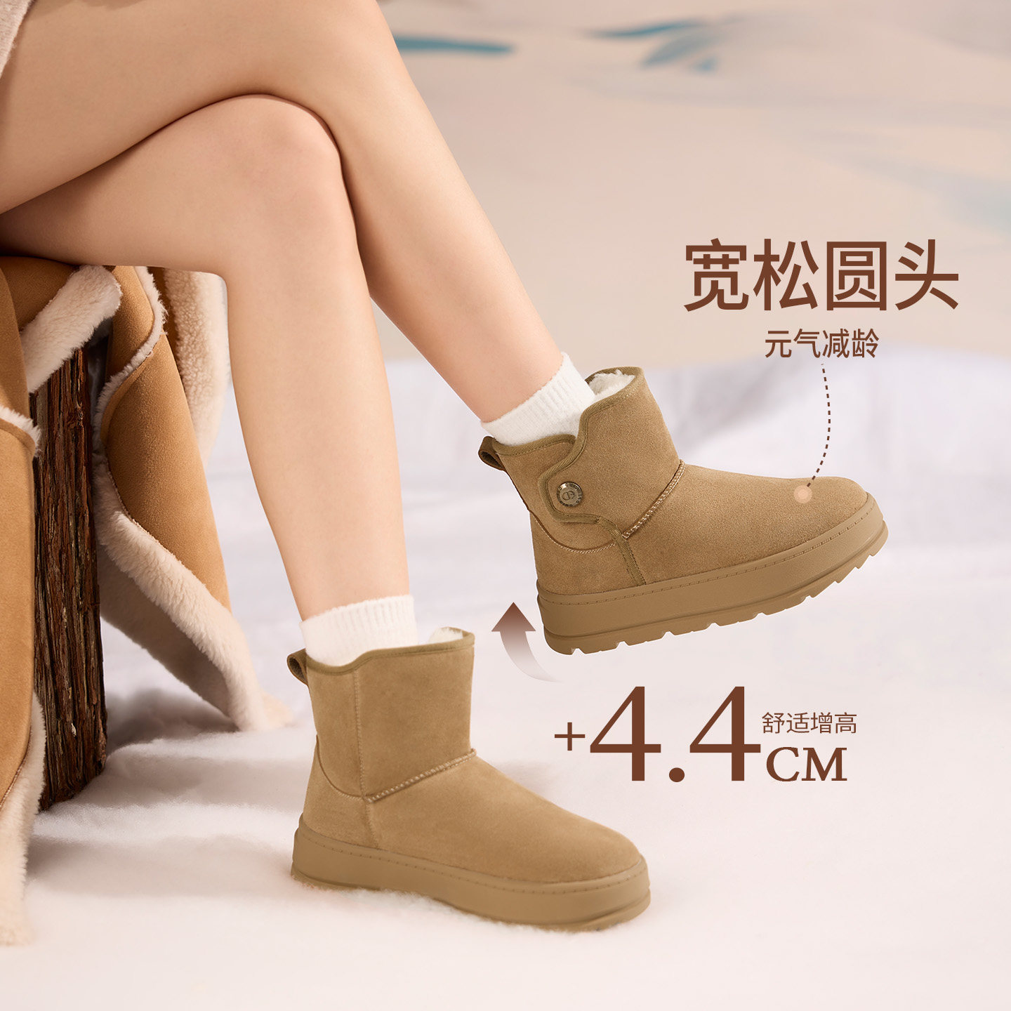 人本厚底雪地靴女款2025新款冬季女鞋东北加绒加厚保暖增高棉鞋