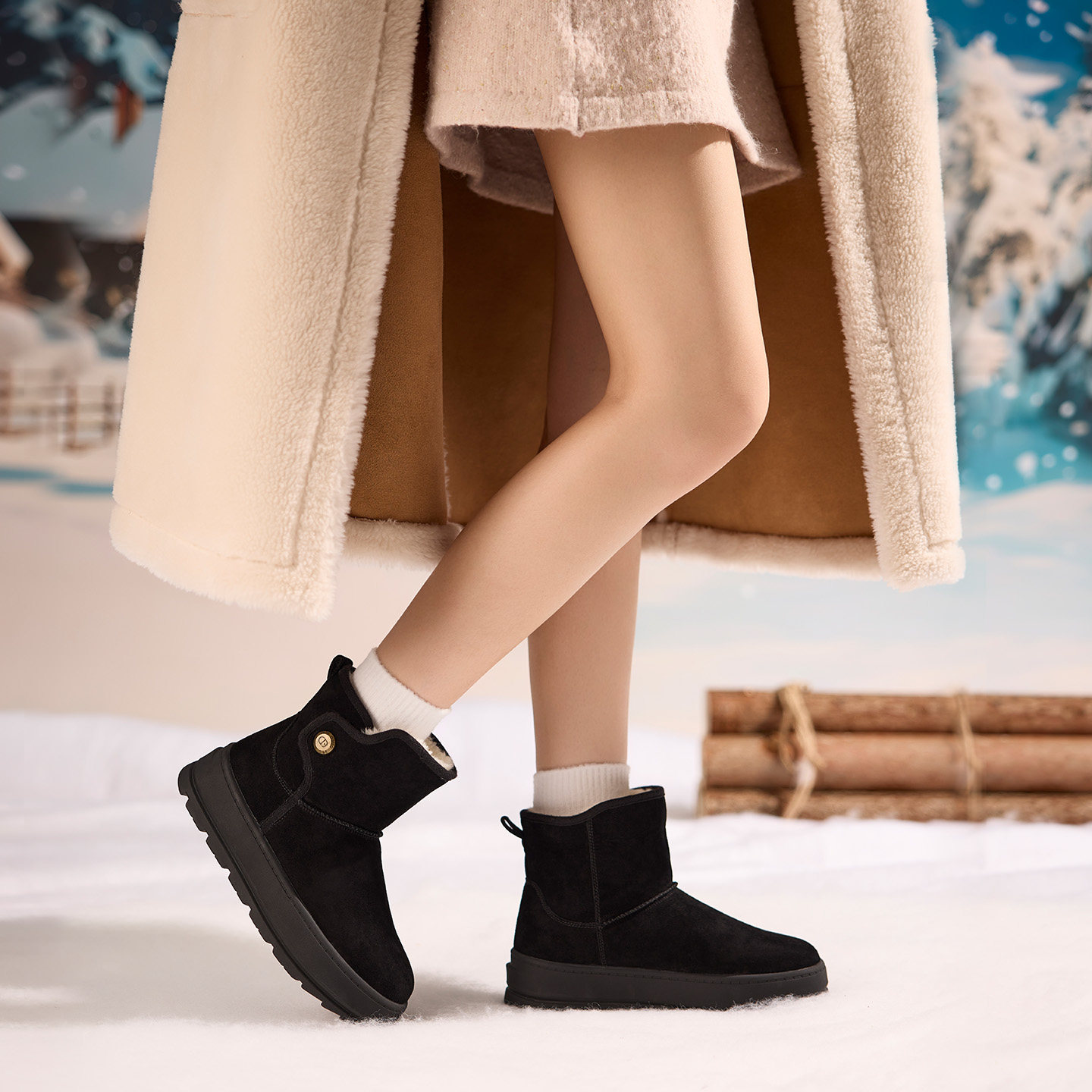 奥康 女鞋2025冬季防水雪地靴短筒厚底东北防滑加厚雪地鞋短靴