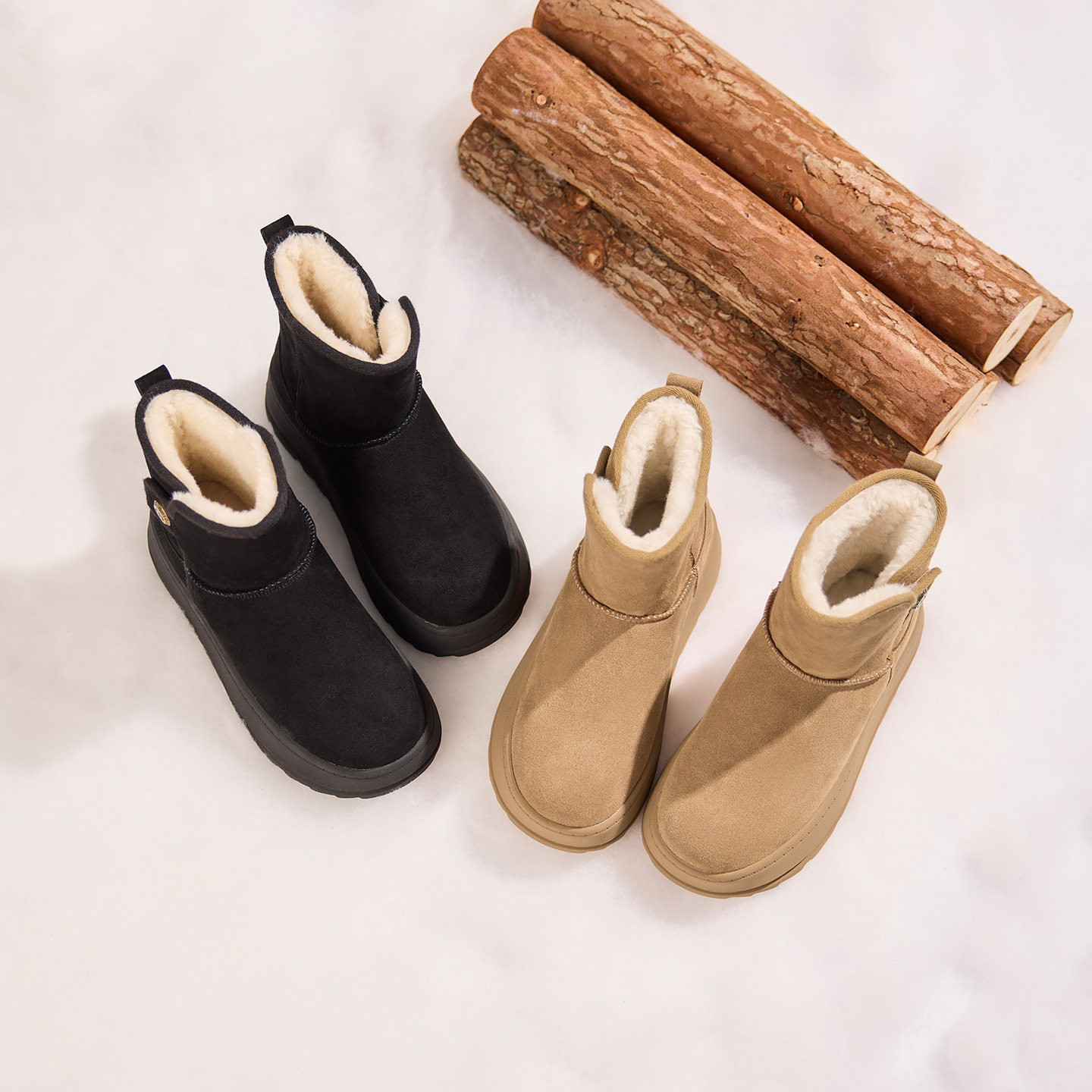 内增高~桑坡真皮厚底羊毛雪地靴女加绒保暖东北棉靴秋冬季短筒靴