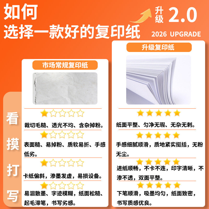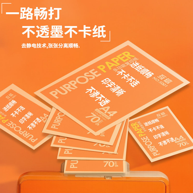 互信A4打印纸70g80g整箱批发双面打印不卡纸无异味一包500张办公室A3纯木浆复印纸学生通用草稿刷题画画白纸