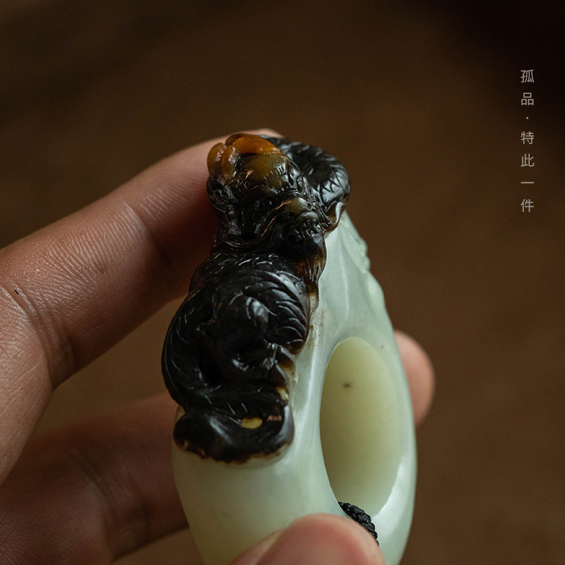 孤品【和田玉·双龙平安扣】手把件高档文玩男士礼 附赠鉴定证书