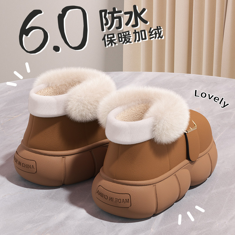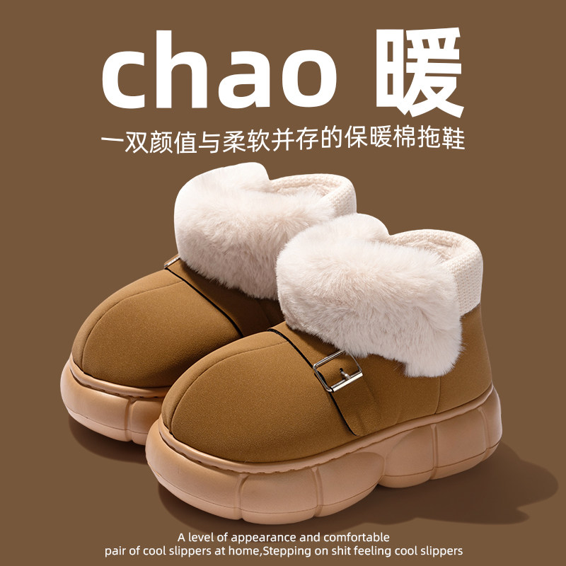 保暖毛绒棉鞋女士加厚毛绒软底家居静音防滑外穿百搭厚底棉拖鞋女