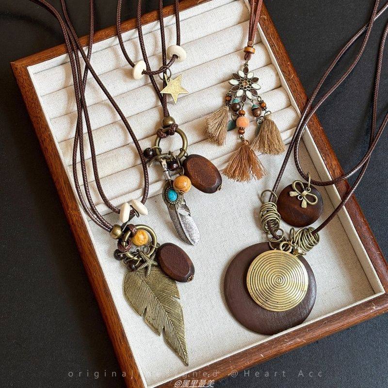 新中式复古民族风吊坠项链女时尚百搭长款挂脖配饰小众叠戴毛衣链