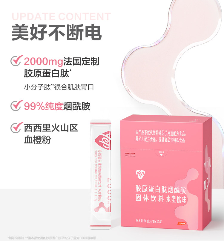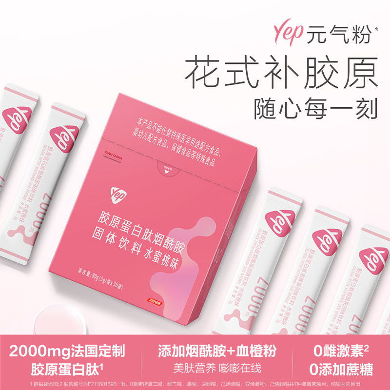 汤臣倍健Yep胶原蛋白肽粉定制胶原蛋白高光粉水蜜桃味鱼胶精华