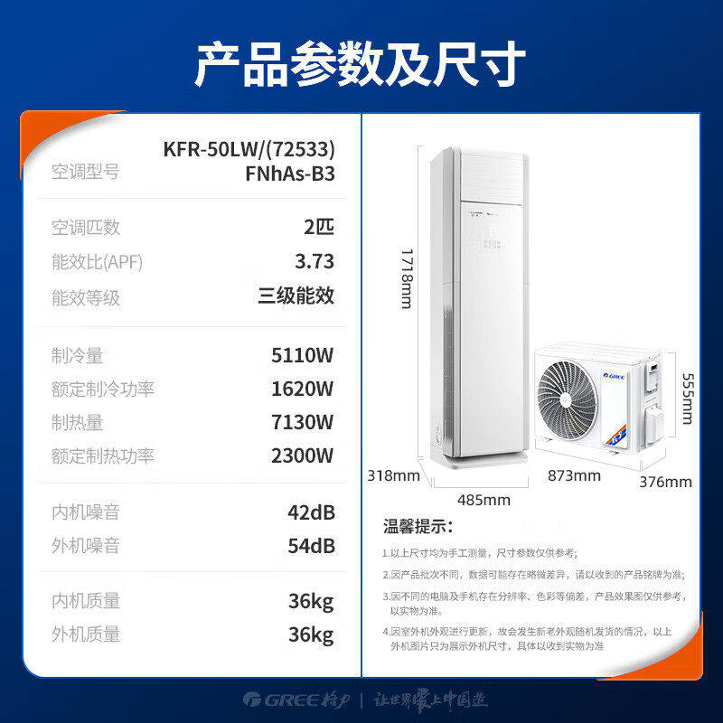 格力空调京爽2匹三级能效变频冷暖柜机大客厅家用立柜式官方正品