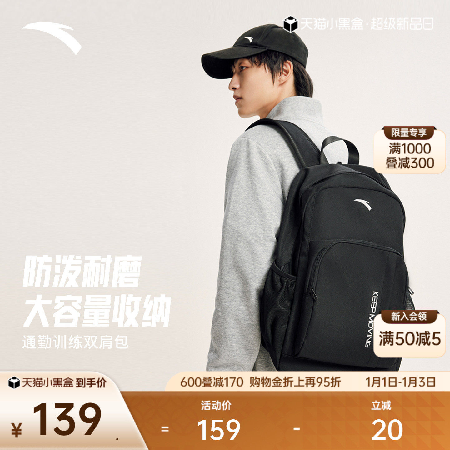 安踏运动双肩包通勤旅行背包中学生男书包黑色大容量电脑包正品