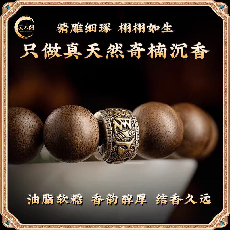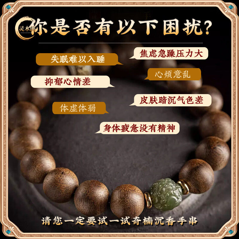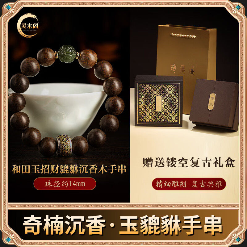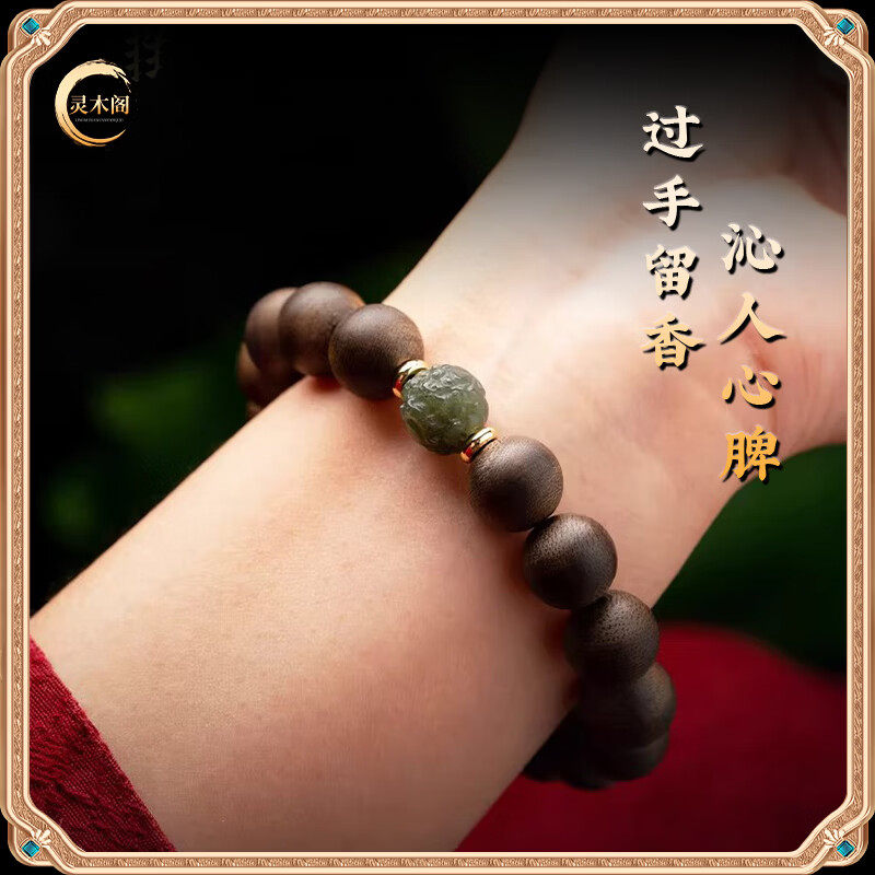 天然越南芽庄奇楠沉香手串男士和田玉招财貔貅木质佛珠文玩手链女