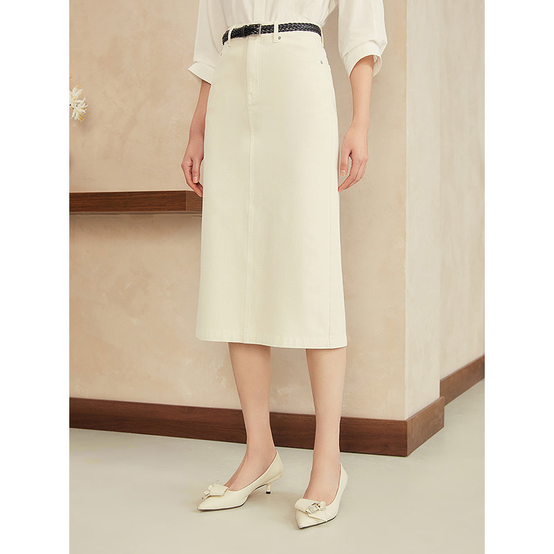 COCOBELLA设计感高腰通勤OL遮胯半身裙西装裙过膝毛呢长裙HS613-2