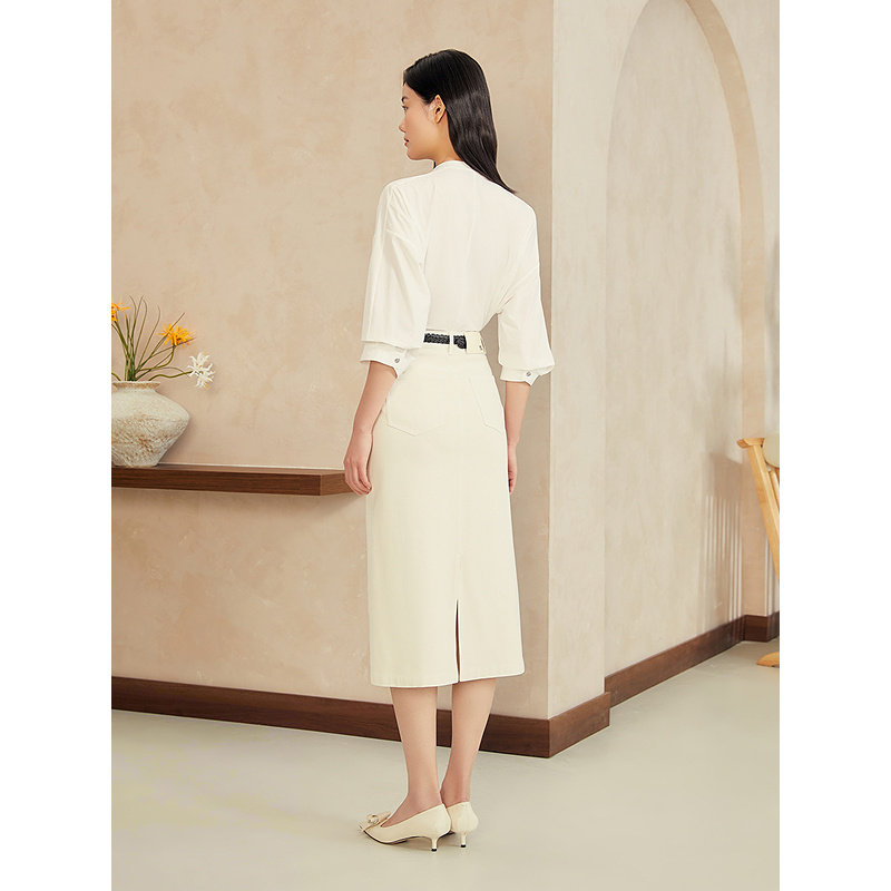 YINER音儿2025夏季新款法式百搭小A字裙子通勤开衩优雅半身裙