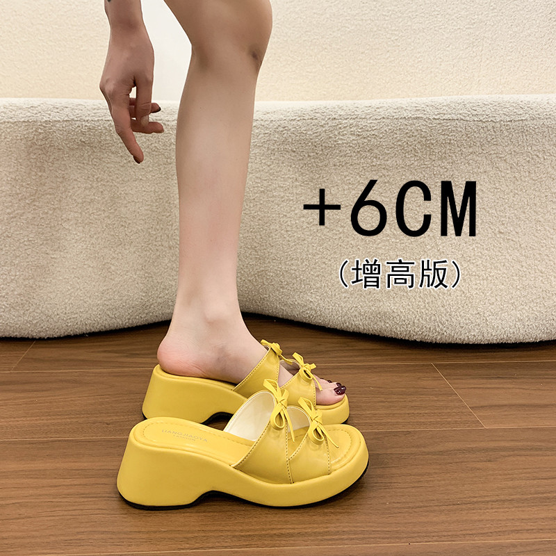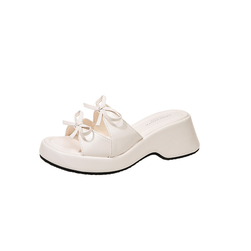 法式蝴蝶结厚底增高凉鞋女外穿坡跟碎花拖鞋配裙子露趾时装凉鞋子