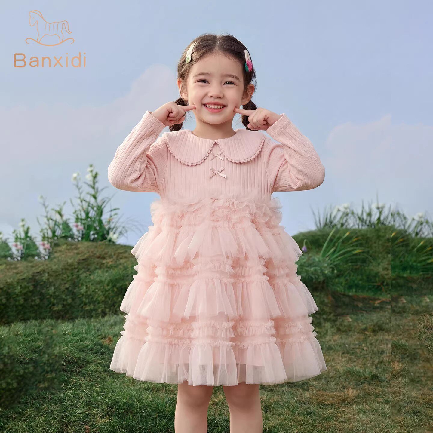 班喜迪女童连衣裙春装2026新款女宝宝公主裙周岁礼服春秋儿童裙子