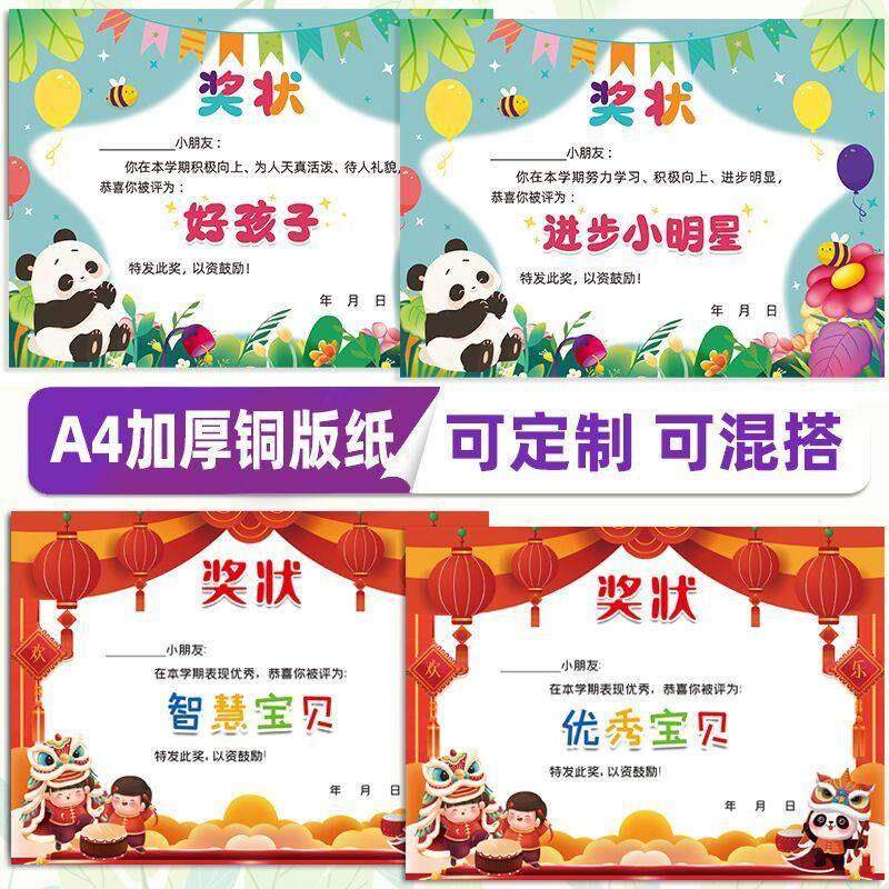 幼儿园小朋友奖状创意风A4学期好孩子奖状优秀进步机构 可定制157