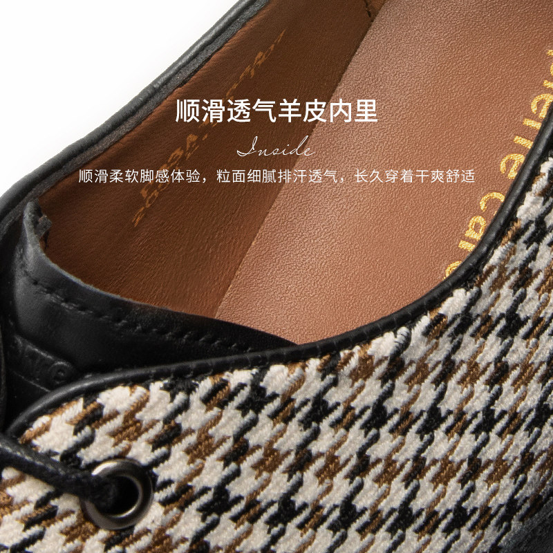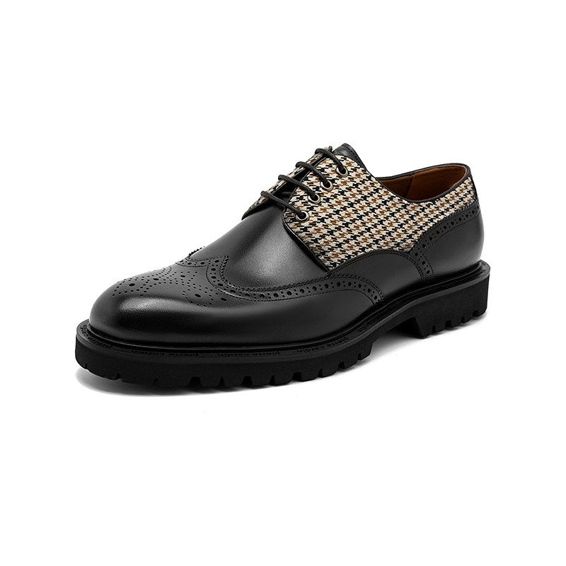 Pierre Cardin/皮尔卡丹男鞋拼接千鸟格布洛克鞋真皮皮鞋轻底