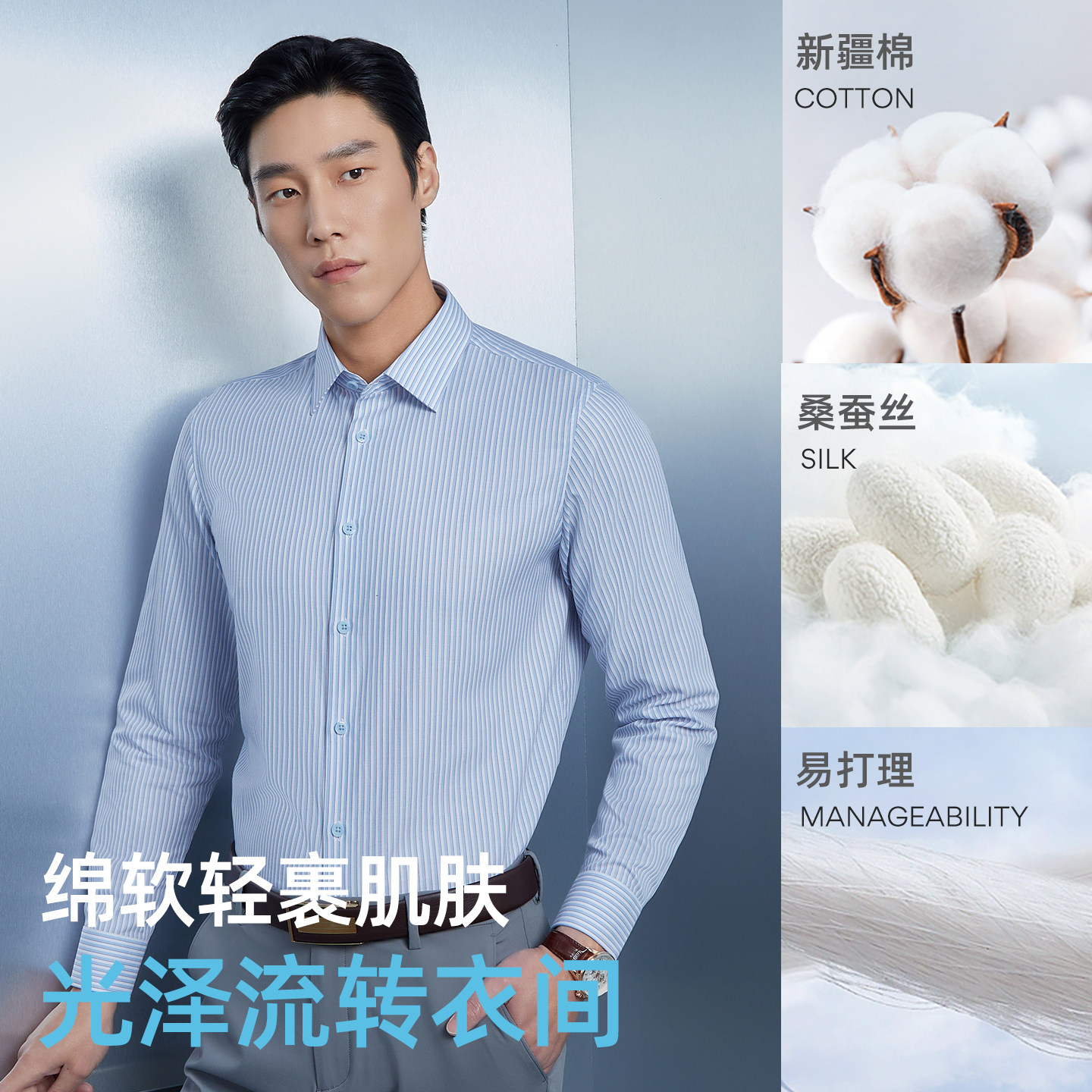 【10%桑蚕丝凉感】雅戈尔秋季新品条纹商务休闲易打理长袖衬衫男