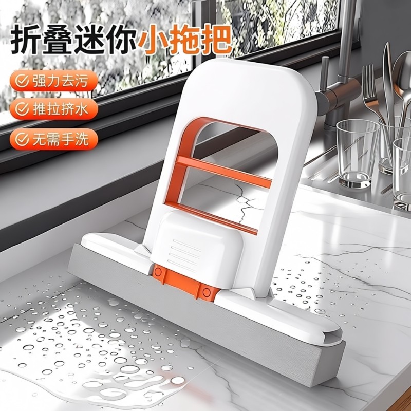2025新款家用海绵袖珍折叠迷你小拖把台桌面懒人手持免洗代替抹布