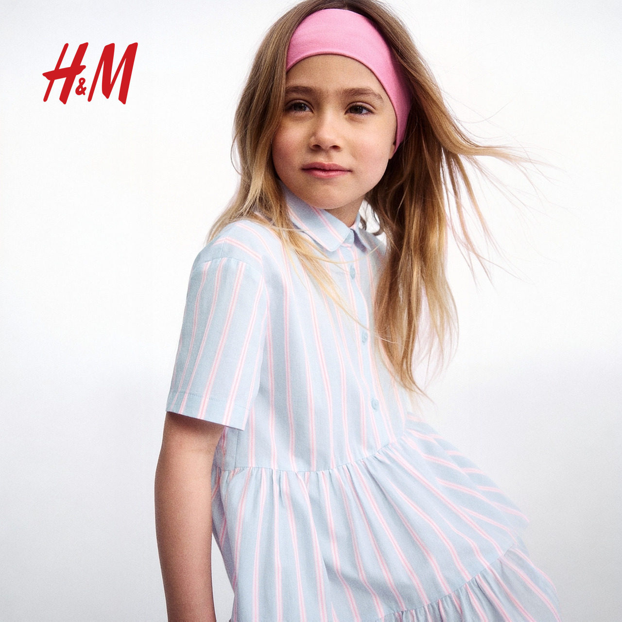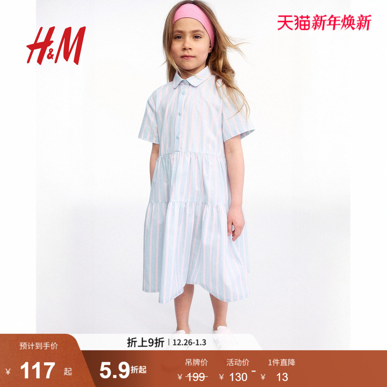 HM童装儿童女童裙子春季休闲棉质衬衫式连衣裙公主裙1273390