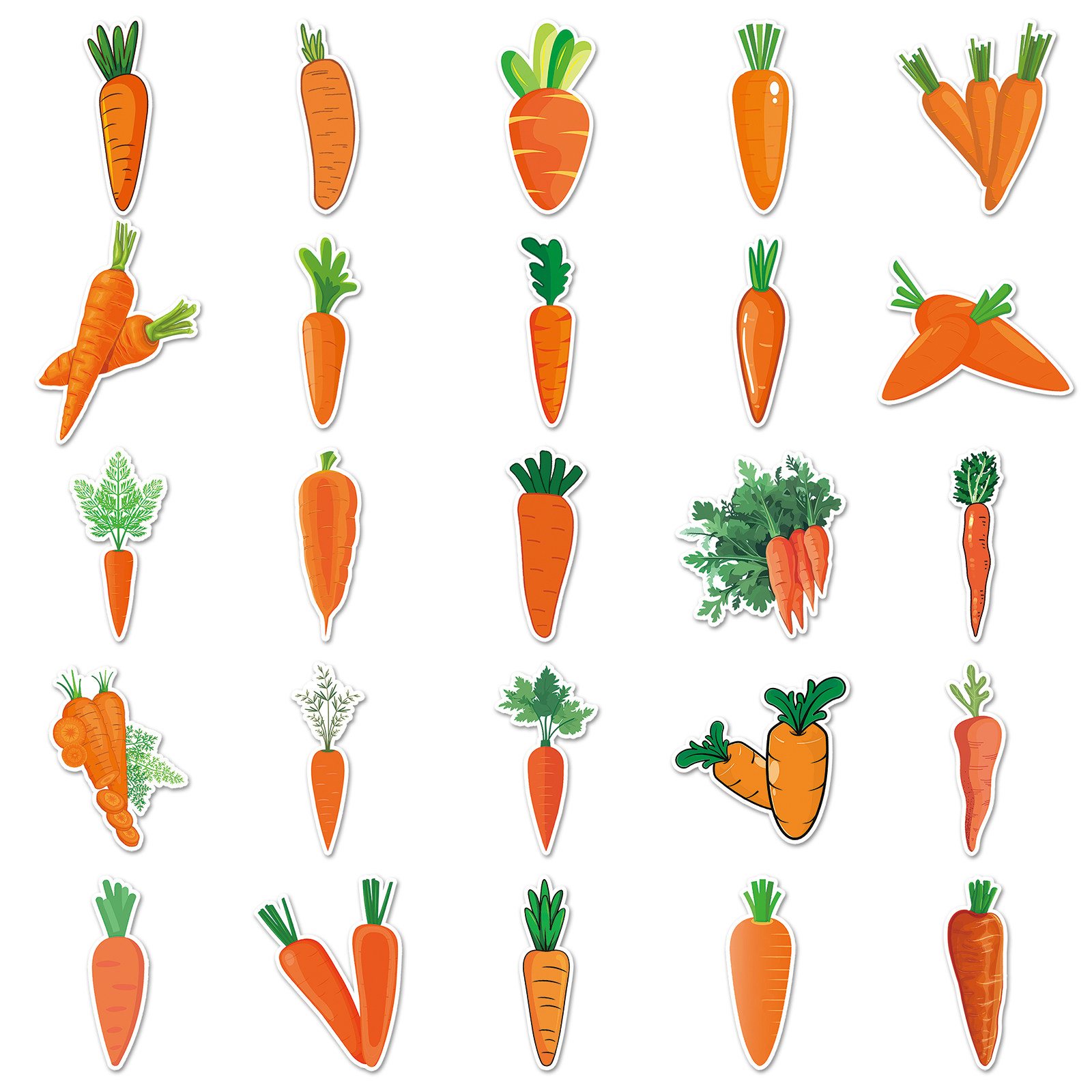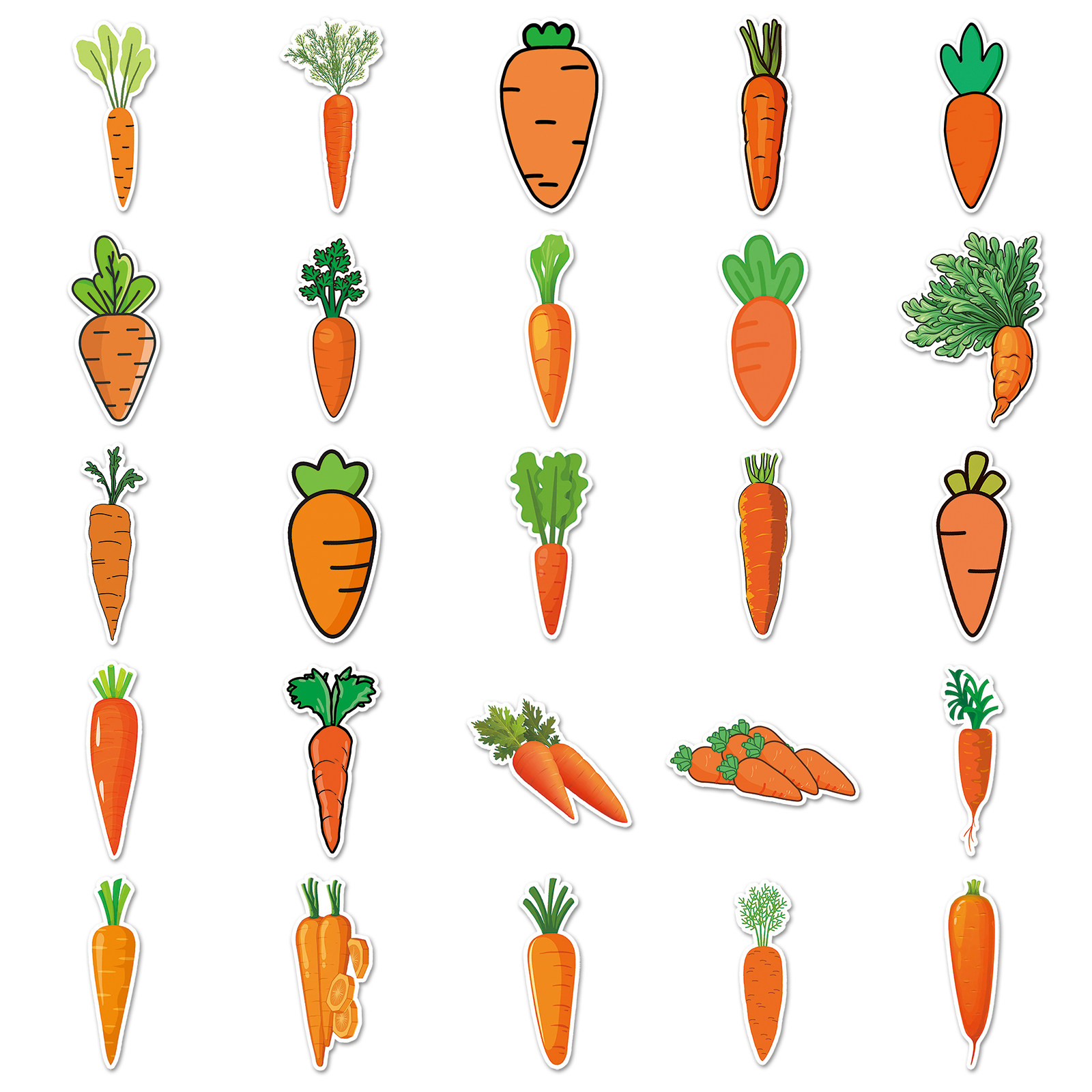 100张胡萝卜卡通贴纸创意彩绘涂鸦潮流美味蔬菜水果红萝卜防水装饰手机笔记本吉他滑板平板橱窗厨房冰箱贴纸
