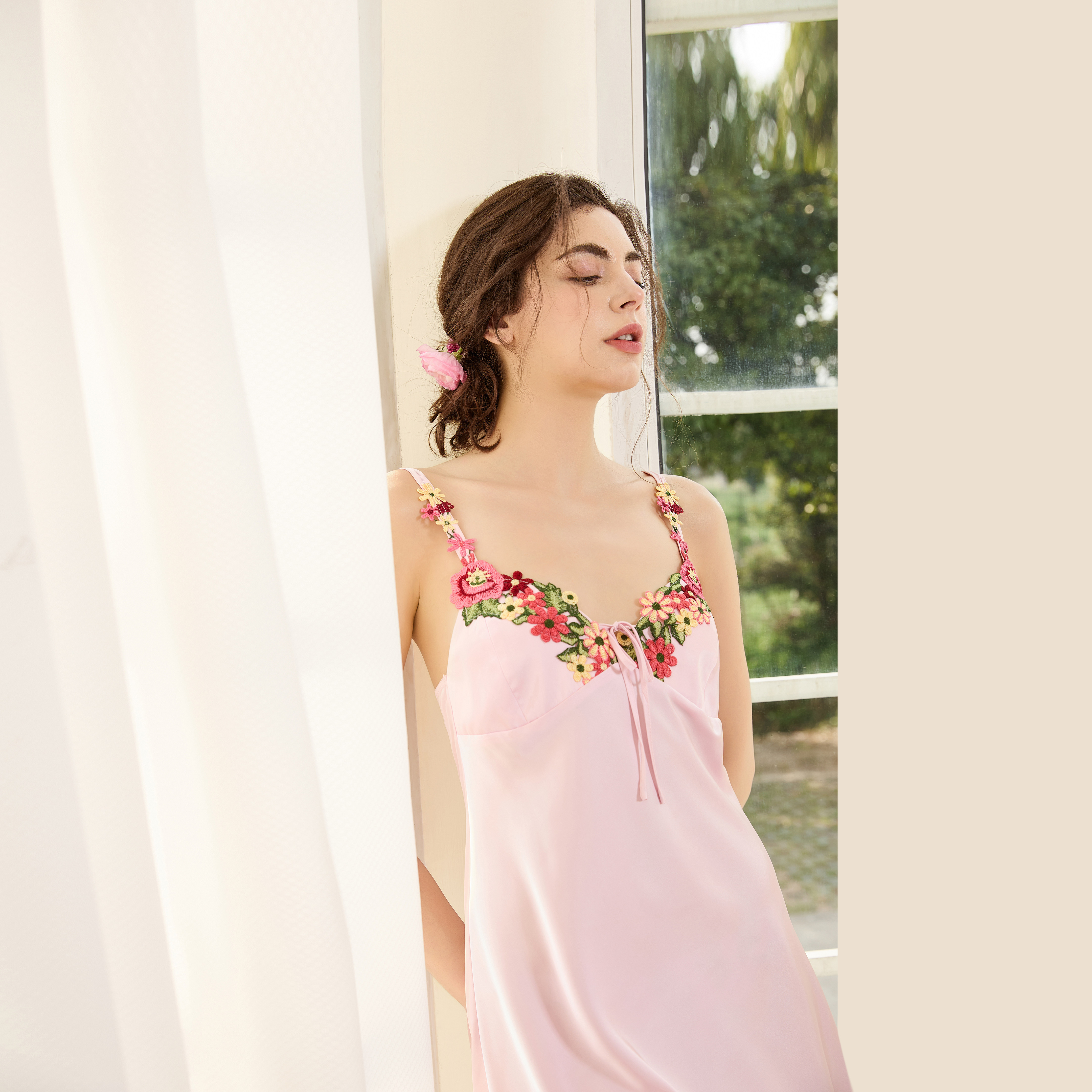 银桑INESANCE22姆米重磅长款真丝睡裙蕾丝宽松轻奢桑蚕丝女士睡衣