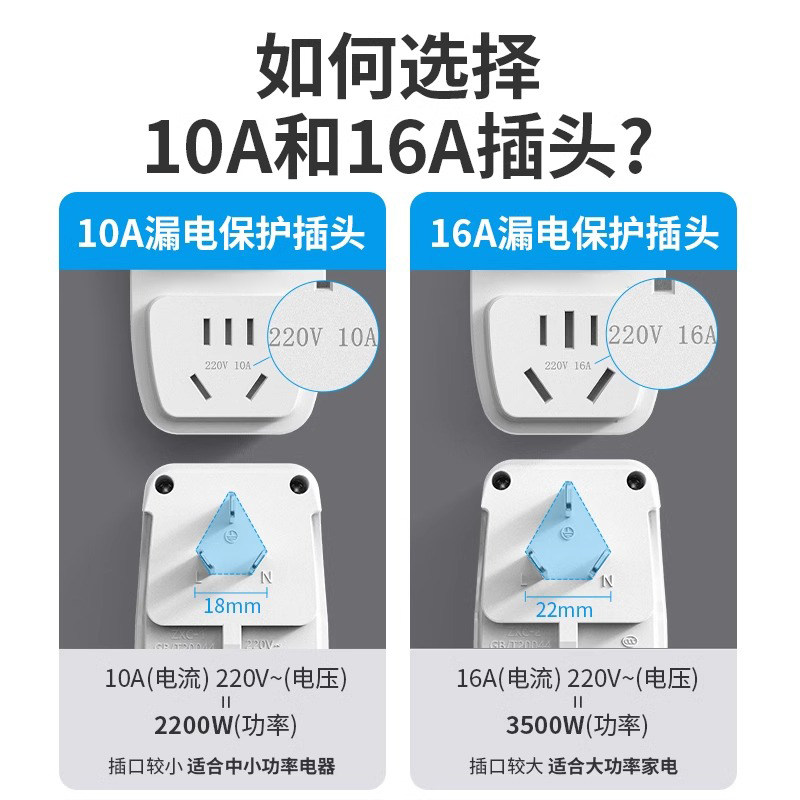 漏电保护插头16a空调10a电热水器专用漏保防触电电源开关插座防水