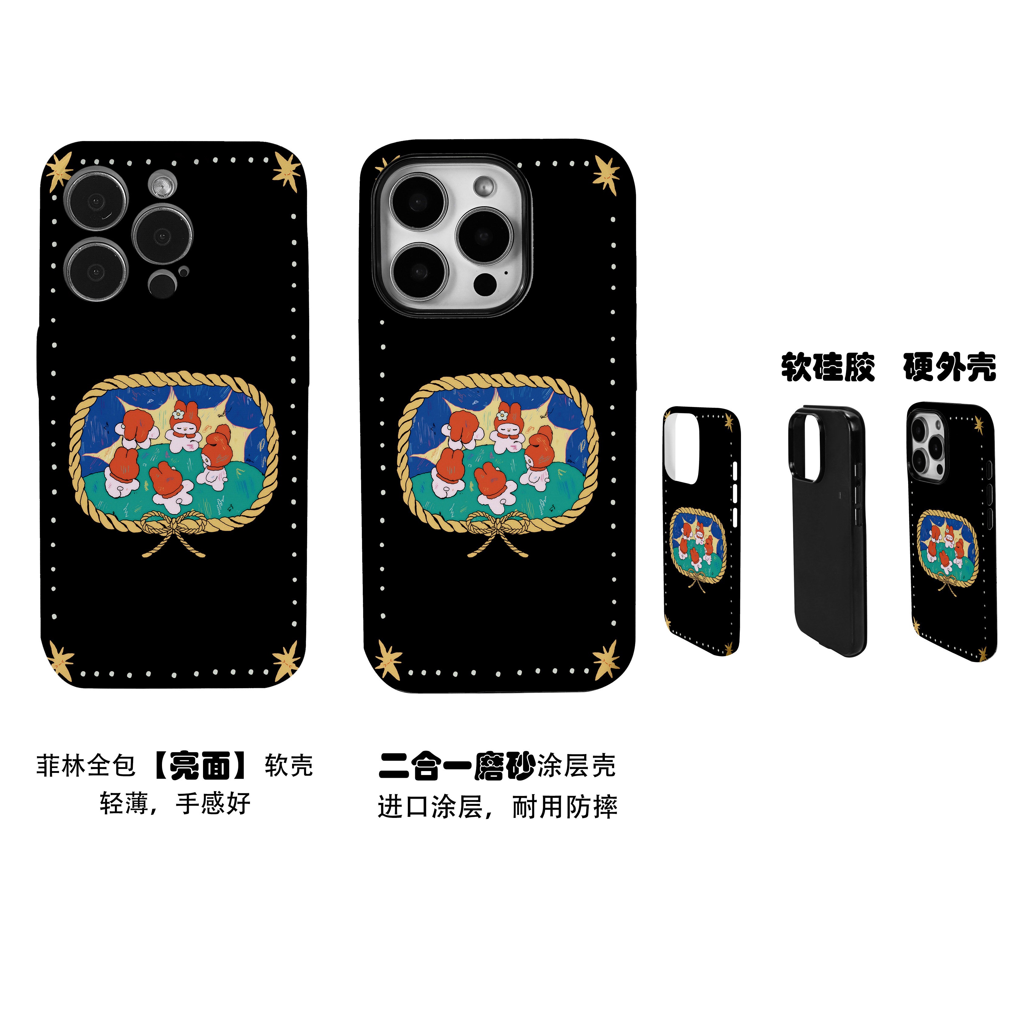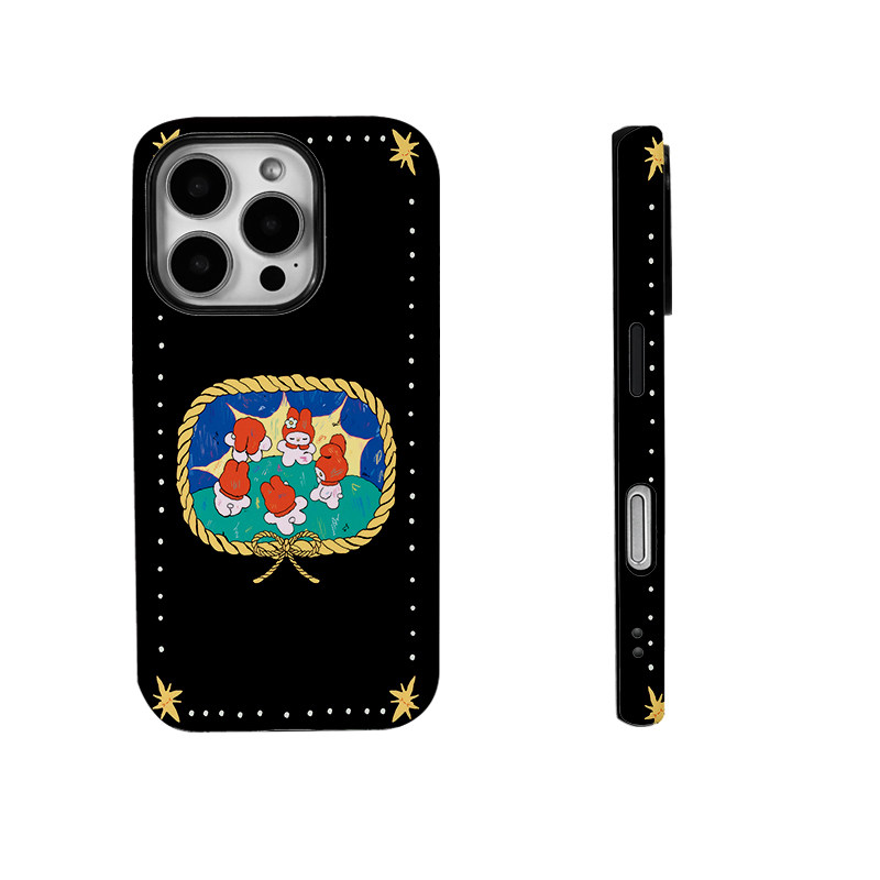 可爱兔兔一起跳舞黑色菲林二合一手机壳适用苹果17nova14华为p70mate60小米15opporen14ovivo荣耀300iPhone16