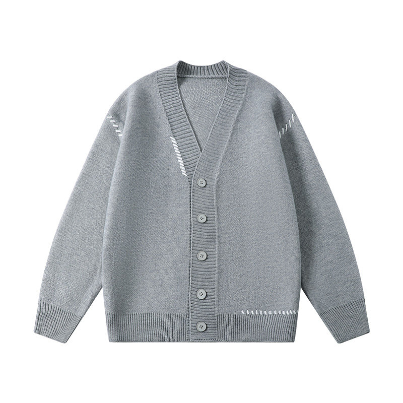 猫人新款撞色宽松开衫毛衣2026春季男女同款慵懒风休闲V领针织衫Y