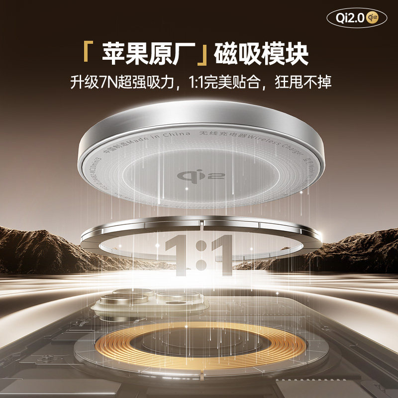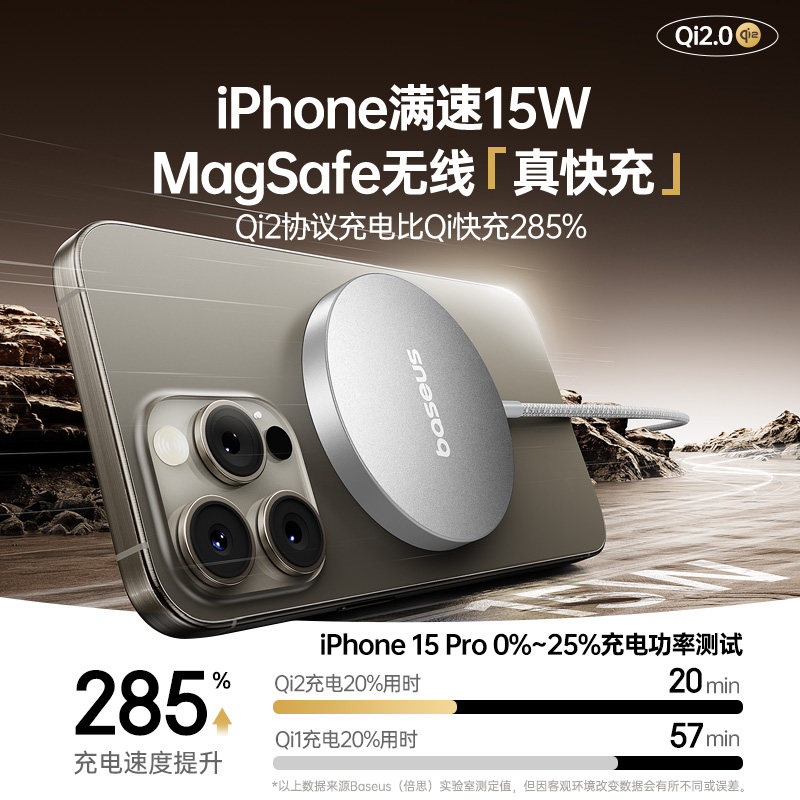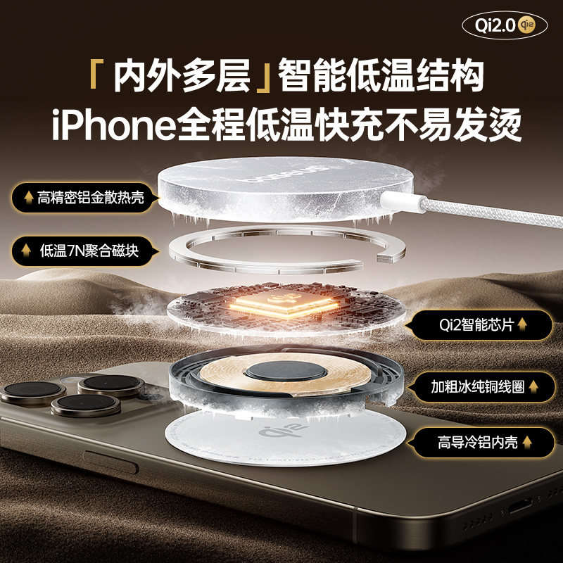 倍思Qi2协议15W适用苹果17磁吸无线充电器手机magsafe磁吸快充16promax手机14桌面座充13手机万能桌面华为