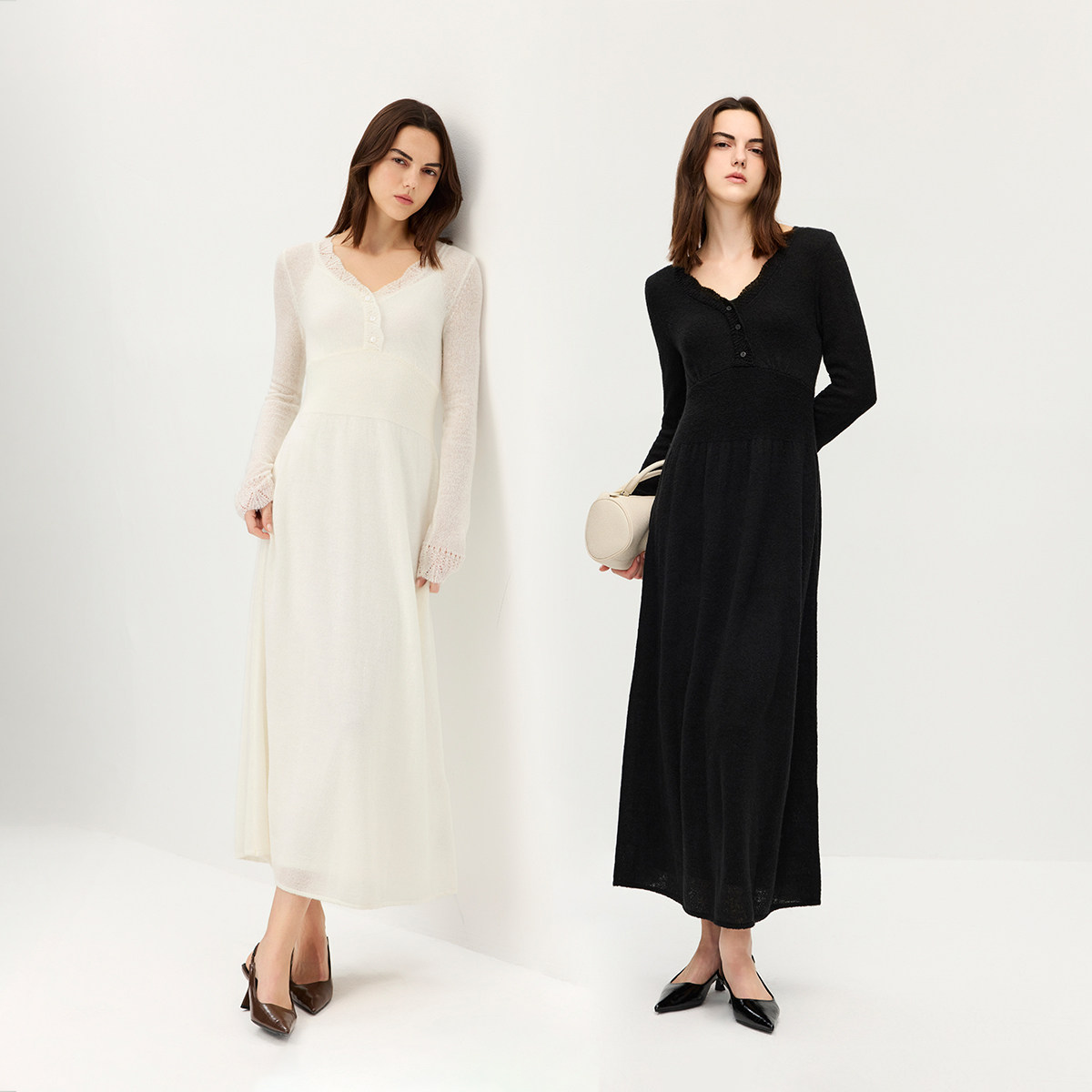 BANANA CICI2026年春季新款荷叶边V领针织衫/连衣裙