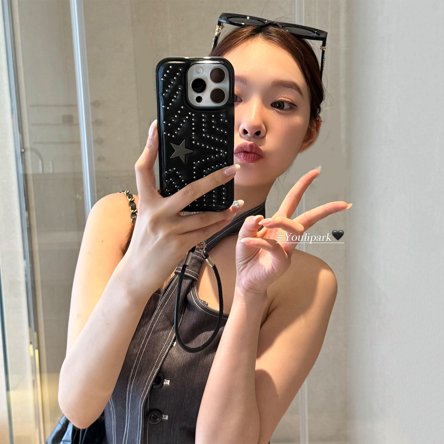 由里公园ins小众时髦酷黑皮质铆钉星星15适用16pro苹果16ProMax手机壳iPhone16全包14新款14Promax保护套13女