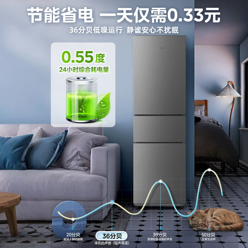 美的出品华凌229电冰箱三开门家用小冰箱节能冷冻冷藏超薄租房