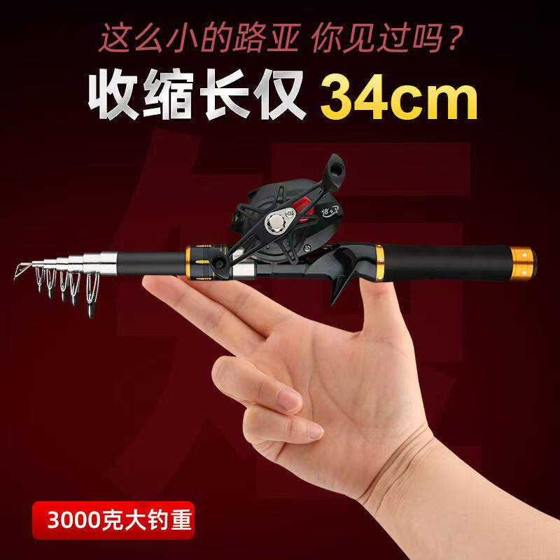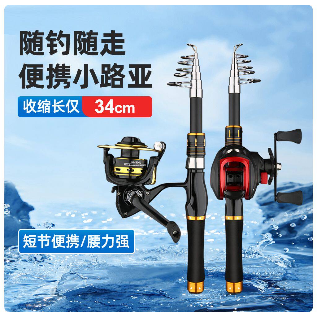 新款超短迷你伸缩路亚竿小型鱼竿全套套装海竿路亚竿水滴轮纺车轮
