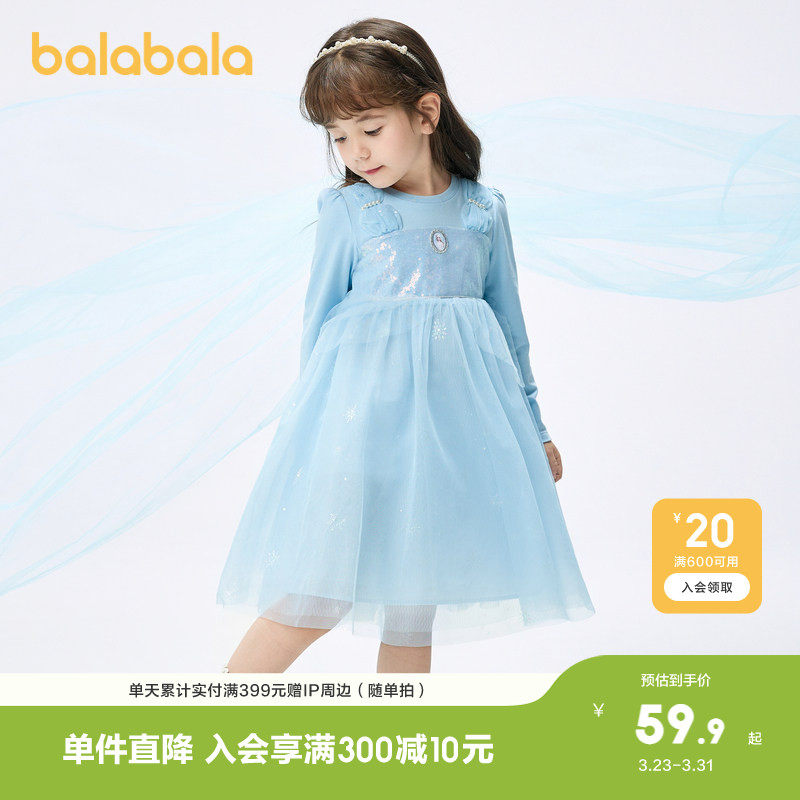 【balaOne】巴拉巴拉童装女童连衣裙2025新款春装网纱裙甜美洋气
