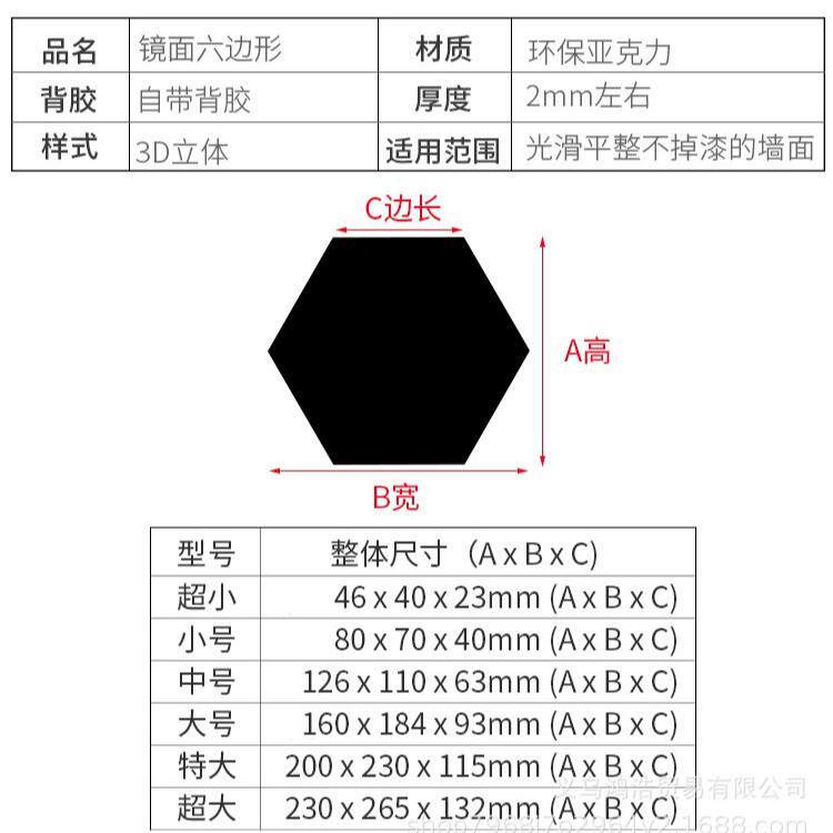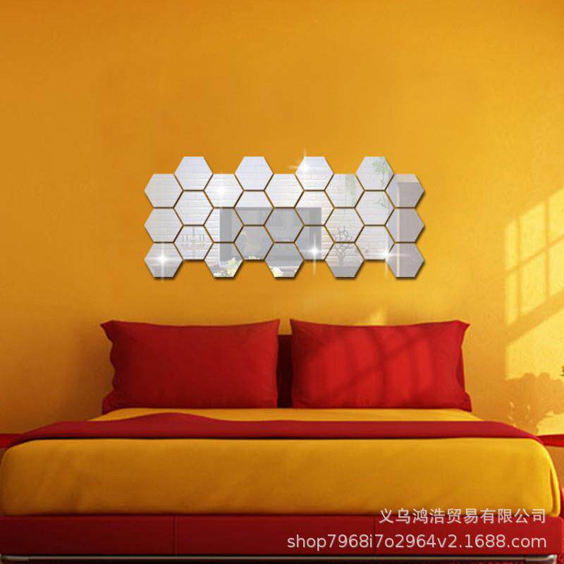 新款直销亚克力六边形镜面墙餐厅玄关壁饰水晶镜子菱形腰线贴立体