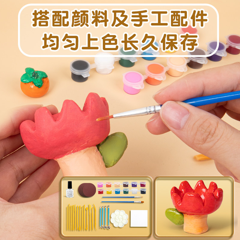 石塑粘土diy材料包免烤泥塑黏土儿童手工塑泥专用陶泥巴套装无毒全套亮油白色可塑石素膏时速黏土工艺品挂件