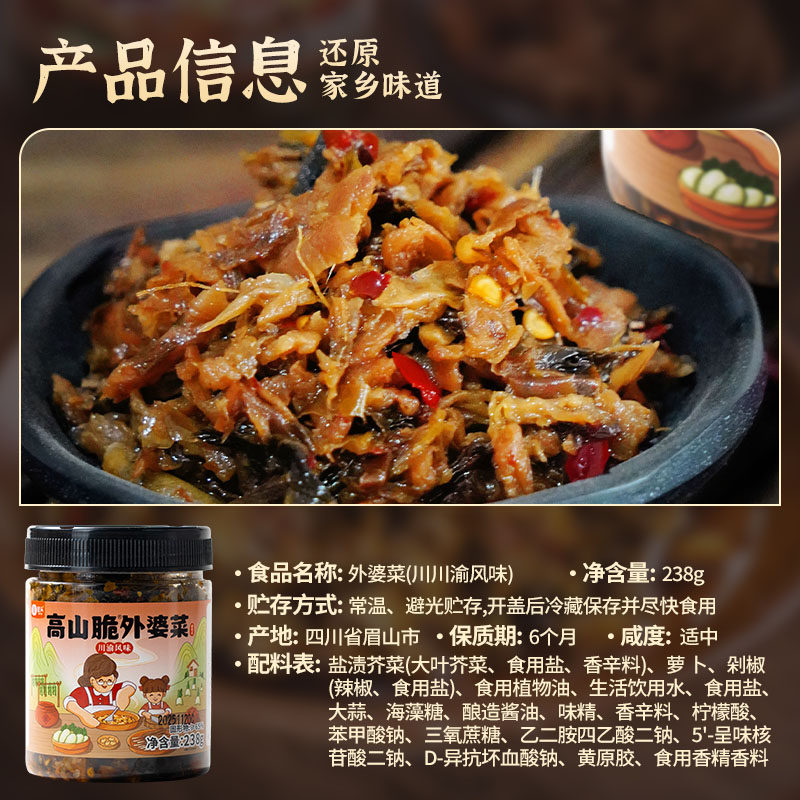 屋头高山脆酸辣外婆菜四川炒酸菜芥菜萝卜干下饭老坛酸菜拌饭瓶装