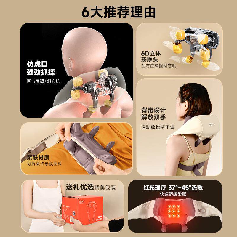 感恩节肩颈按摩仪斜方肌仿人手揉捏披肩电动揉夹加热肩颈椎按摩器