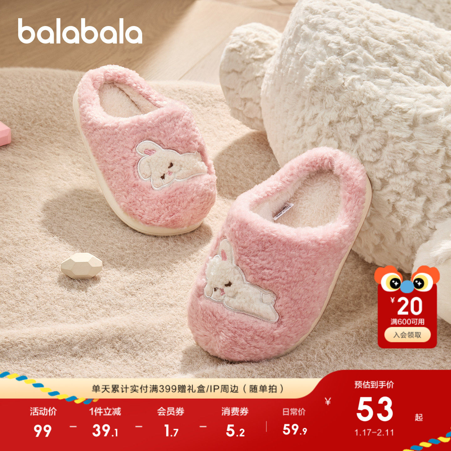 巴拉巴拉儿童棉拖鞋男女童宝宝2025秋冬家居棉鞋保暖可爱动物鞋子