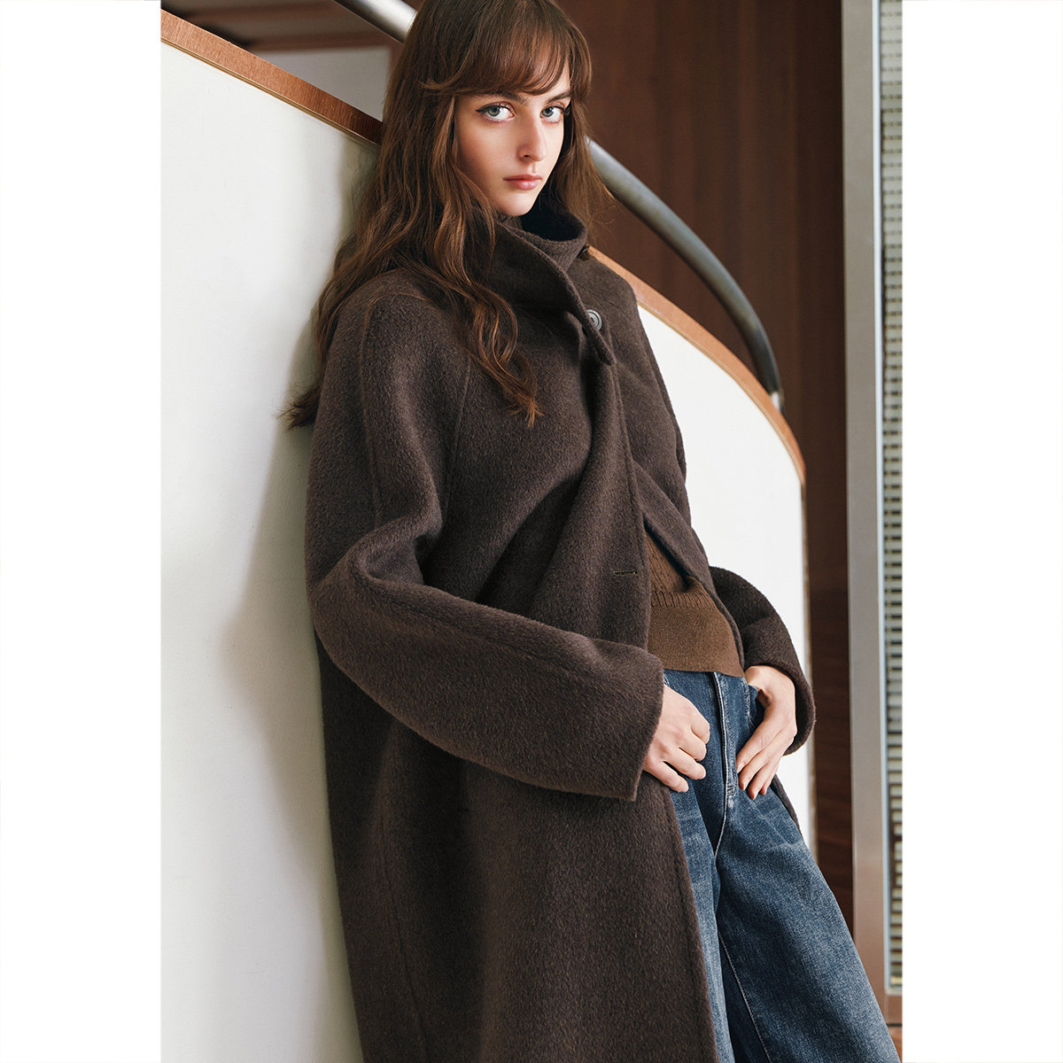 诗篇专选羊毛骆驼绒立领减龄双面呢大衣长款毛呢外套2025冬款