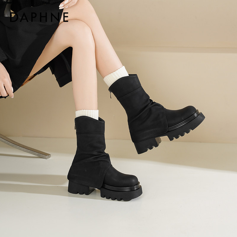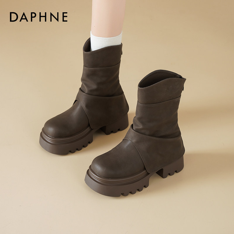 达芙妮厚底马丁靴女款2025新款冬棕色靴子美拉德堆堆靴裤管短靴女