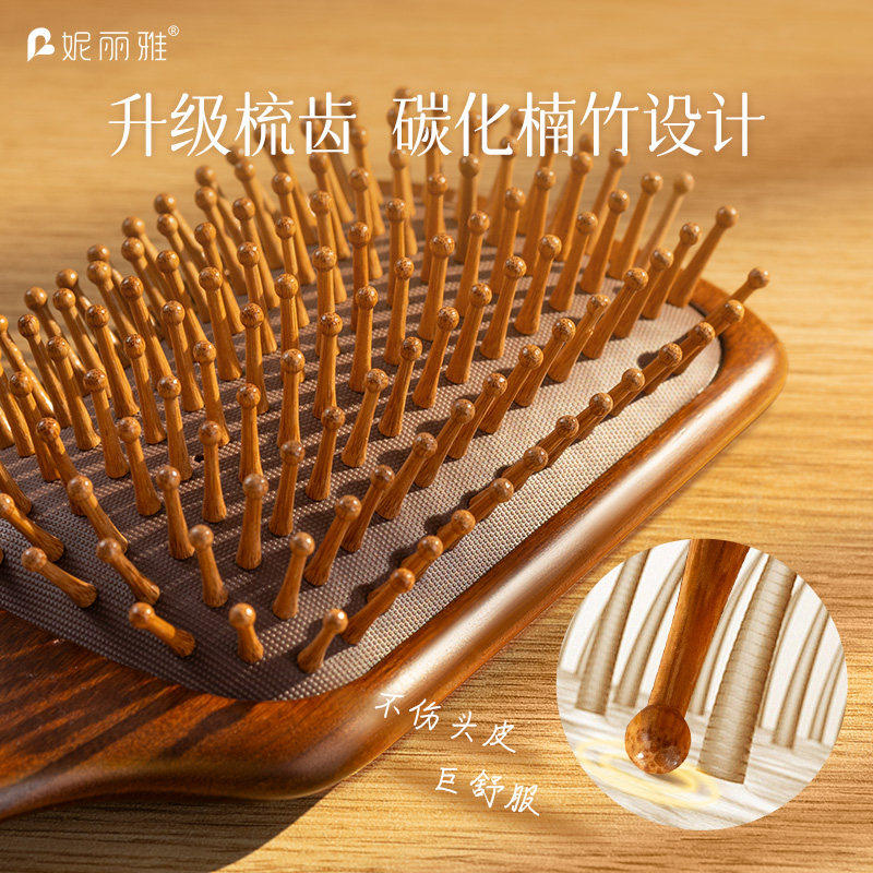 檀木气垫梳女士家用顺发头部头皮经络按摩梳毛囊便携气囊疏通梳子