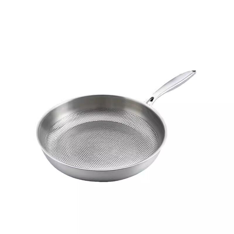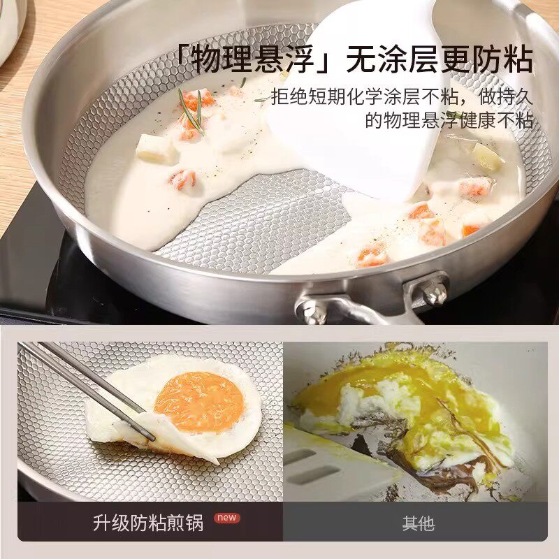 无涂层316L不锈钢不粘锅家用平底煎锅牛排煎蛋炒锅燃气电磁炉专用