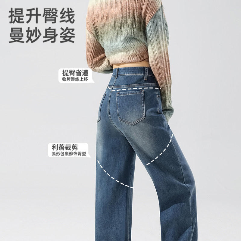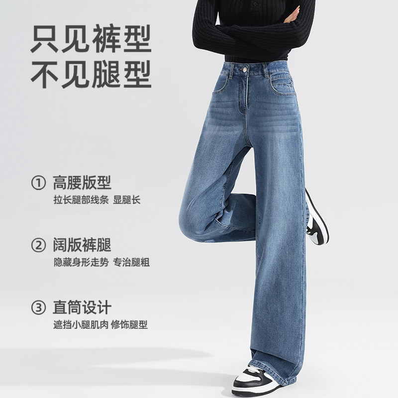 王家有鱼秋冬新款加绒阔腿裤2025百搭修身显瘦宽松直筒牛仔裤子女