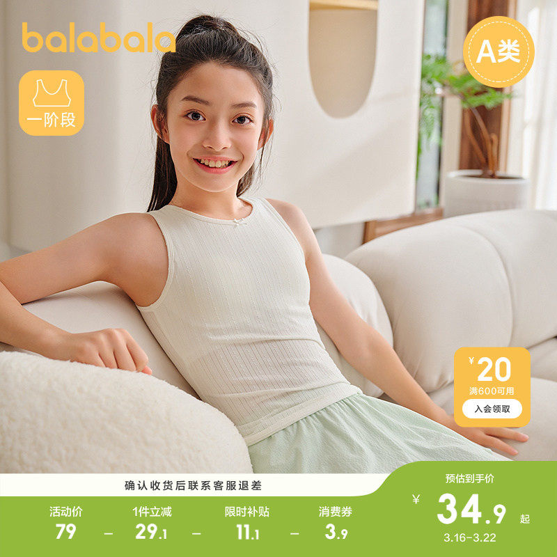 巴拉巴拉女童内衣发育期儿童小背心文胸防凸点防走光弹力亲肤舒适