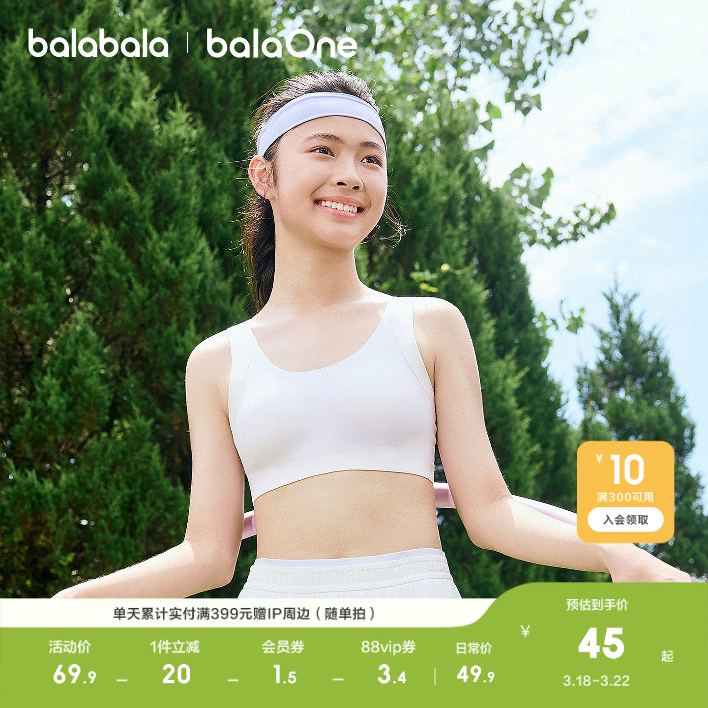 【balaOne】巴拉巴拉女内衣发育期儿童小背心防走光文胸吸湿速干